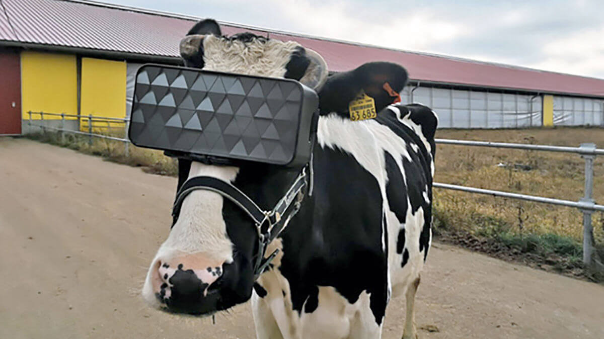 Researchers in Russia have fitted cows with virtual reality headsets that simulate greener pastures in an effort to reduce their anxiety and boost milk production.